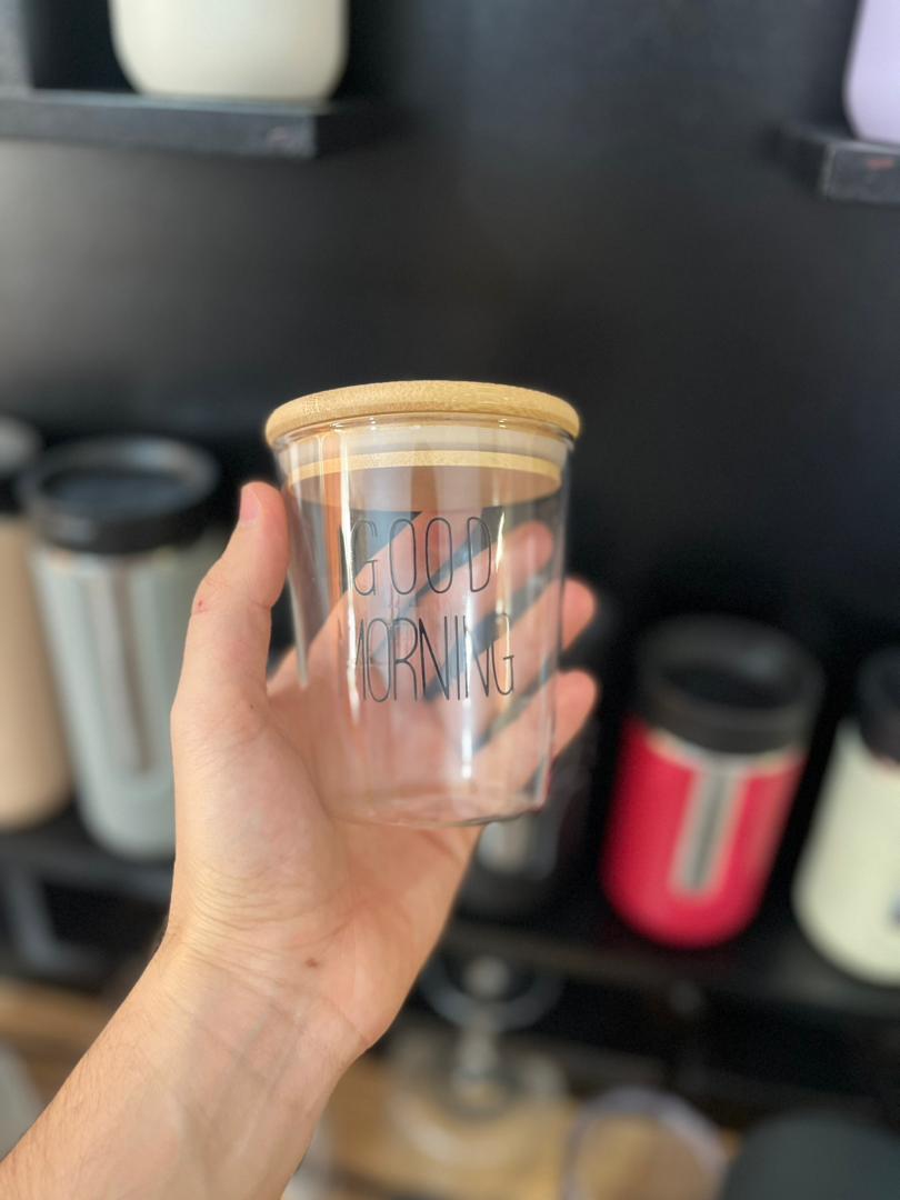 ماگ گود مورنینگ مشکی درب چوب بامبو واشر دار